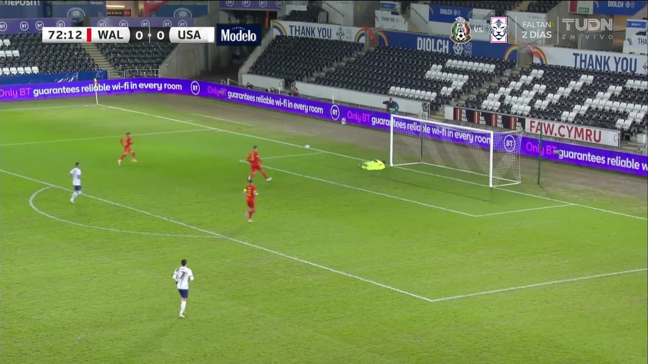 Tiro atajado por abajo a la izquierda. Ulysses Llanez Jr (Estados Unidos) Disparo con la derecha desde fuera del área.