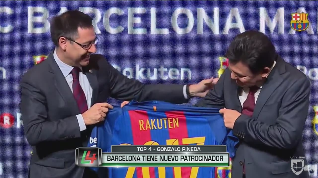 El club español reveló por fin quién es el nuevo patrocinador de su playera: Rakuten, compañía japonesa de comercio electrónico. El acuerdo fue de 220 millones de euros por cuatro años, más variables.