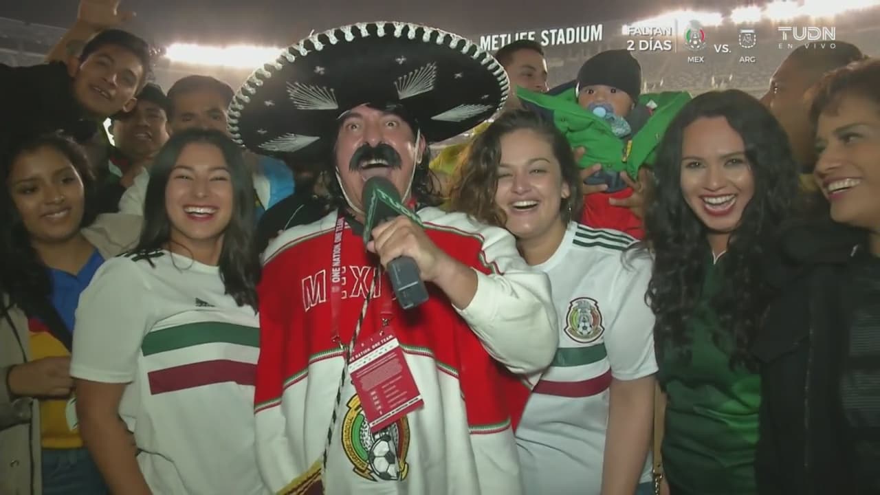 En las gradas durante el juego de México se encontró…hasta a “El Santo”.