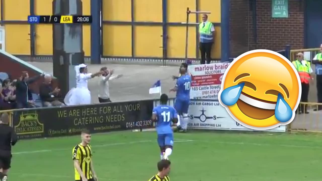 El festejo jamás visto: anota y lo celebró con una ‘novia’ que iba con el vestido de boda puesto