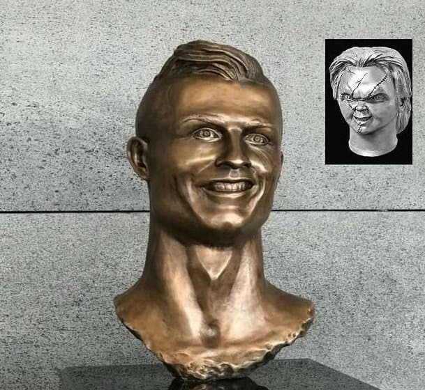 El resultado fue un busto que no se parecía mucho a Cristiano, pero encima tenía una mueca (no llegaba a ser sonrisa) que se asemejaba peligrosamente a Chucky, el Muñeco Maldito.