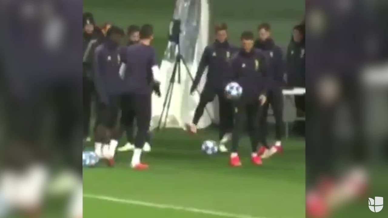 El portugués bromeó con sus compañeros de la Juventus y mostró toda su habilidad con el balón al embocar en la red desde detrás de la portería un tiro con efecto.
