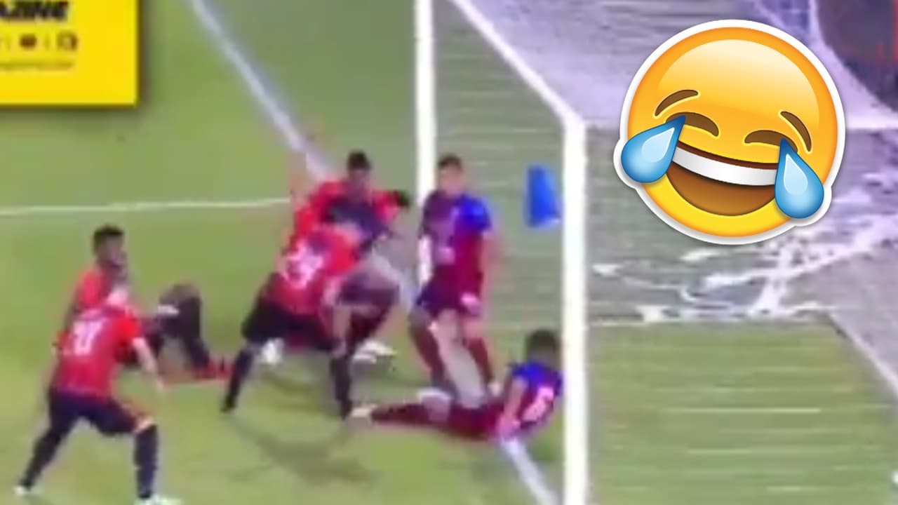 El gol más enredado de la historia: hasta diez jugadores quedaron debajo del arco