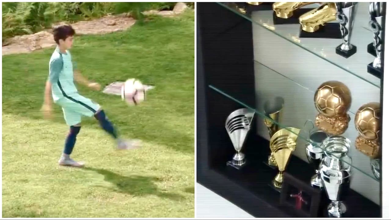 El hijo de Cristiano Ronaldo usa los Balones de Oro de su padre como improvisada portería
