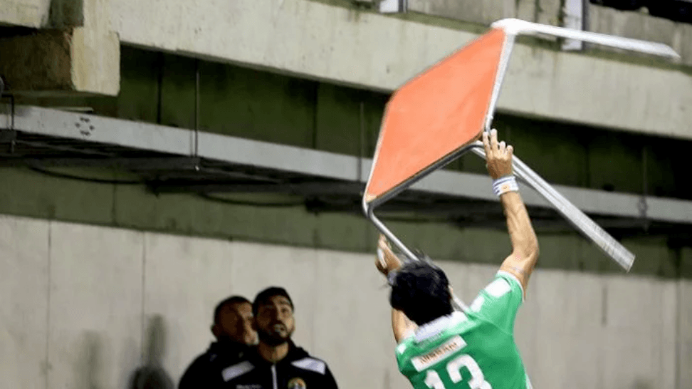 Los gritos e insultos de los hinchas enfurecieron al jugador que reaccionó lanzando la mesa técnica que se encontraba en la parte baja del estadio.