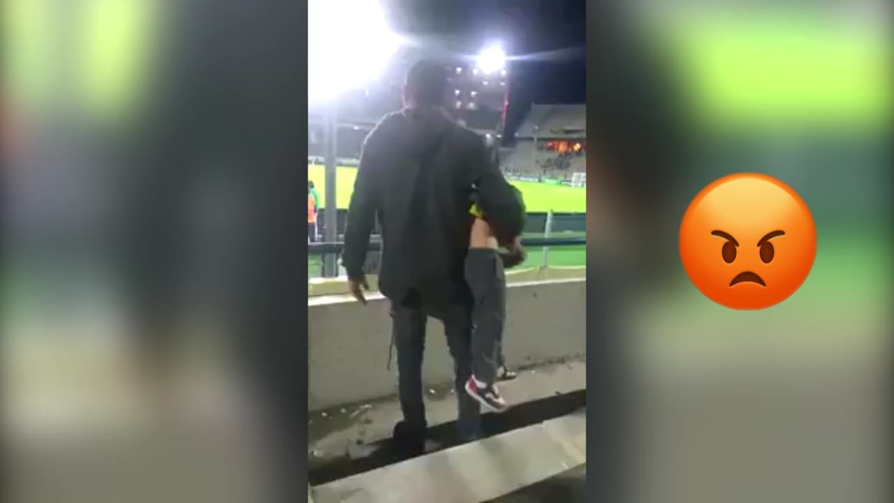El peor padre del mundo: insulta al equipo rival ¡con su pequeño hijo en sus brazos!