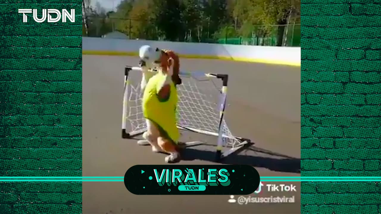 Con la playera de la selección de Brasil, este canino demostró sus dotes bajo los tres palos.