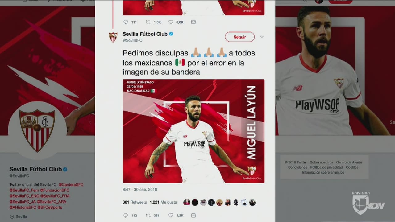 El Sevilla FC confundió la bandera mexicana en la bienvenida a Miguel Layún