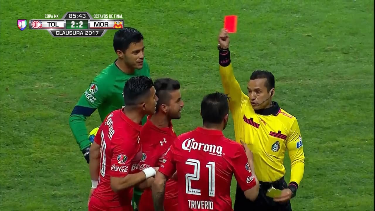 A Jesús Méndez, Enrique Triverio y Alfredo Talavera le mostraron la tarjeta roja durante el partido de octavos de final de la Copa MX ante el Morelia. Está para récord mundial.