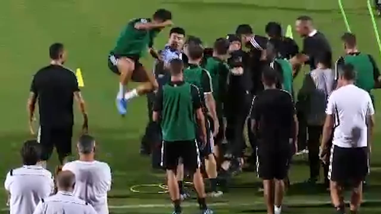 La estrella de la Juventus saltó sobre un guardia de seguridad mientras arrestaban a un joven que intentó acercarse a los jugadores durante una sesión de entrenamiento.