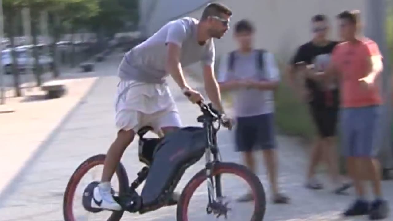 ¿Enloqueció? Piqué llegó a toda velocidad en bici eléctrica al entrenamiento del Barça
