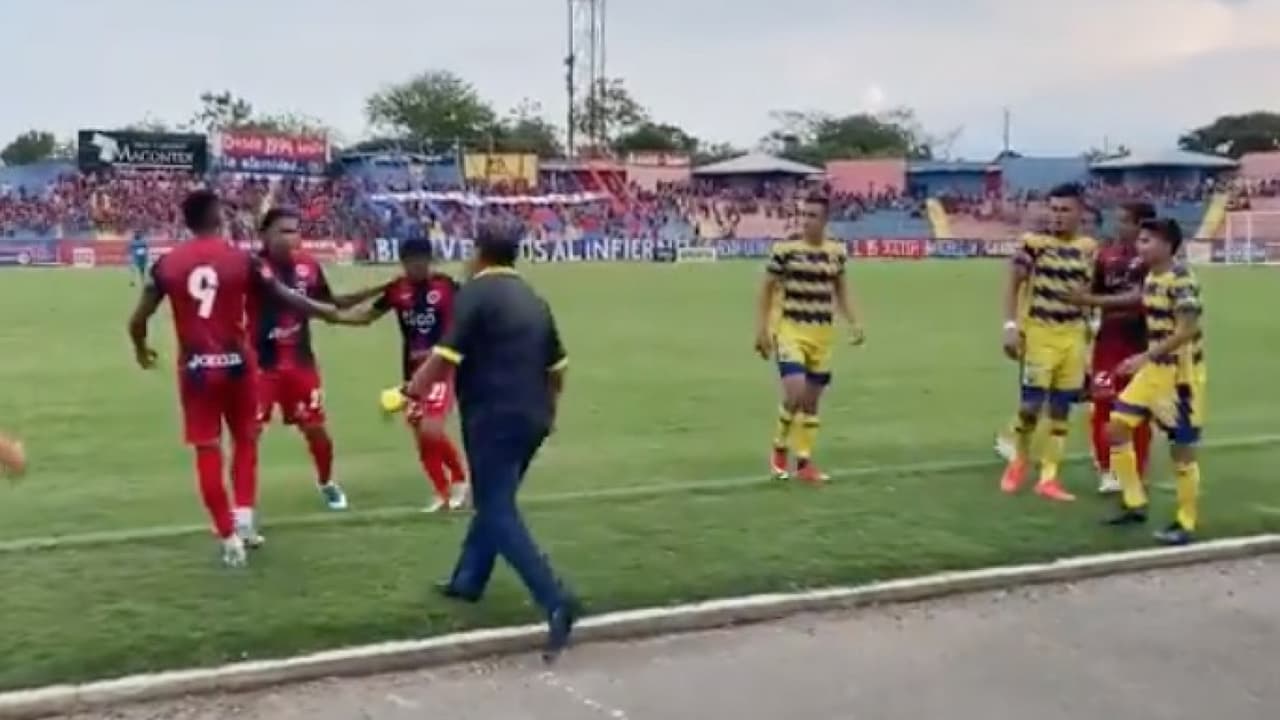 Cuando ya iban hacia los túneles se escucha a Nelson Ancheta, entrenador del Municipal Limeño, insultar a Peña acompañado de un ademán con la mano: “Bolo, borracho hijo de pu…”, se percibe claramente en el video de un reportero salvadoreño que hacía trabajo en cancha.