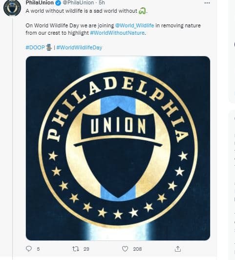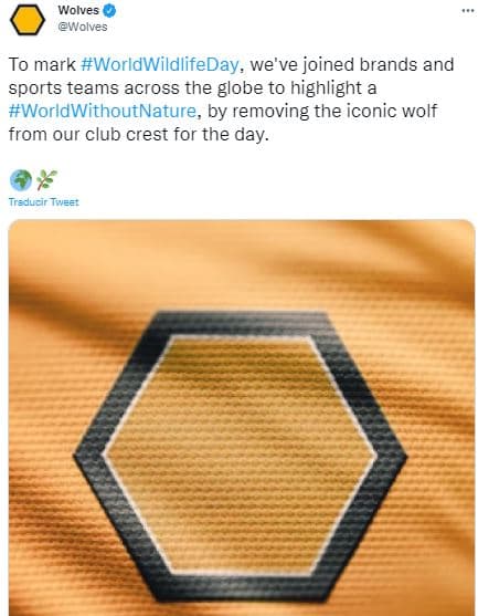 Wolverhampton y Aston Villa repitieron la campaña de hace un año, pues ofrecieron su apoyo al Fondo Mundial para la Naturaleza Cualquiera y quitaron el lobo y el león de su famosa insignia, así como el Philadelphia Union que se sumó este 2022 y quitó a su serpiente.
