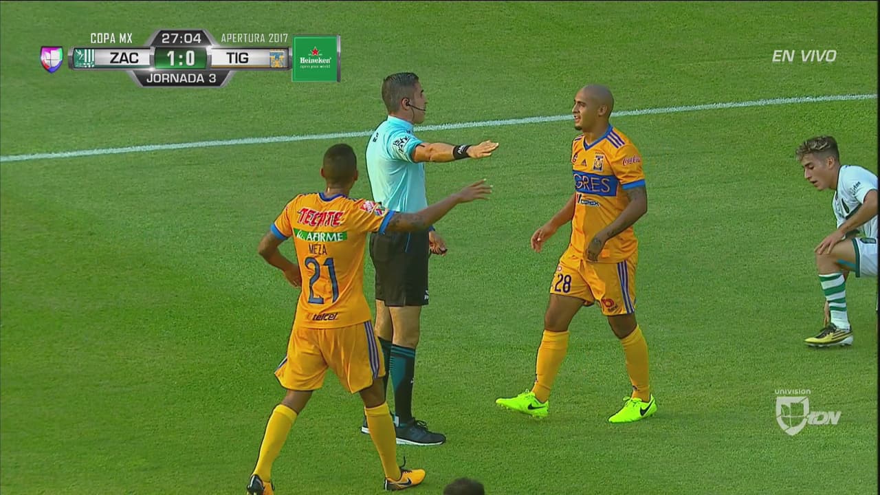 Alejandro Zendejas fue derribado dentro del área por el defensor de Tigres, permitiéndole una nueva chance al cuadro local.