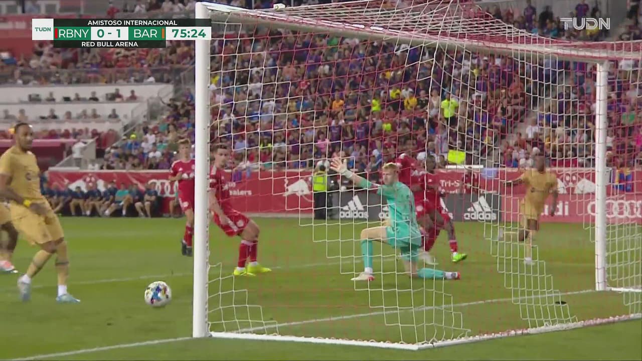 El Barcelona no puede hacer otro tanto que sentencie el partido y el disparo del catalán se va desviado al 76'.