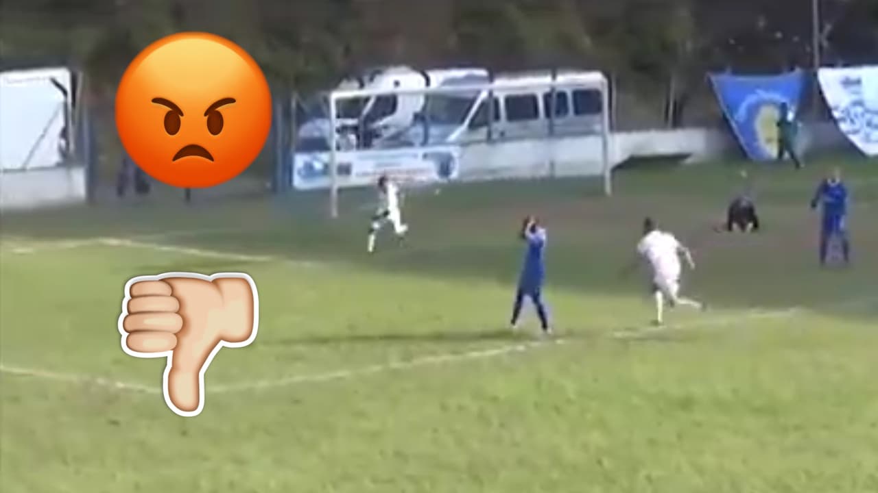 La escena se dio ayer en el partido entre el Carepebus FC y el Serrano Football Club de la Serie B del Campeonato Carioca en Brasil. Para colmo, el equipo del portero perdió 3-2.