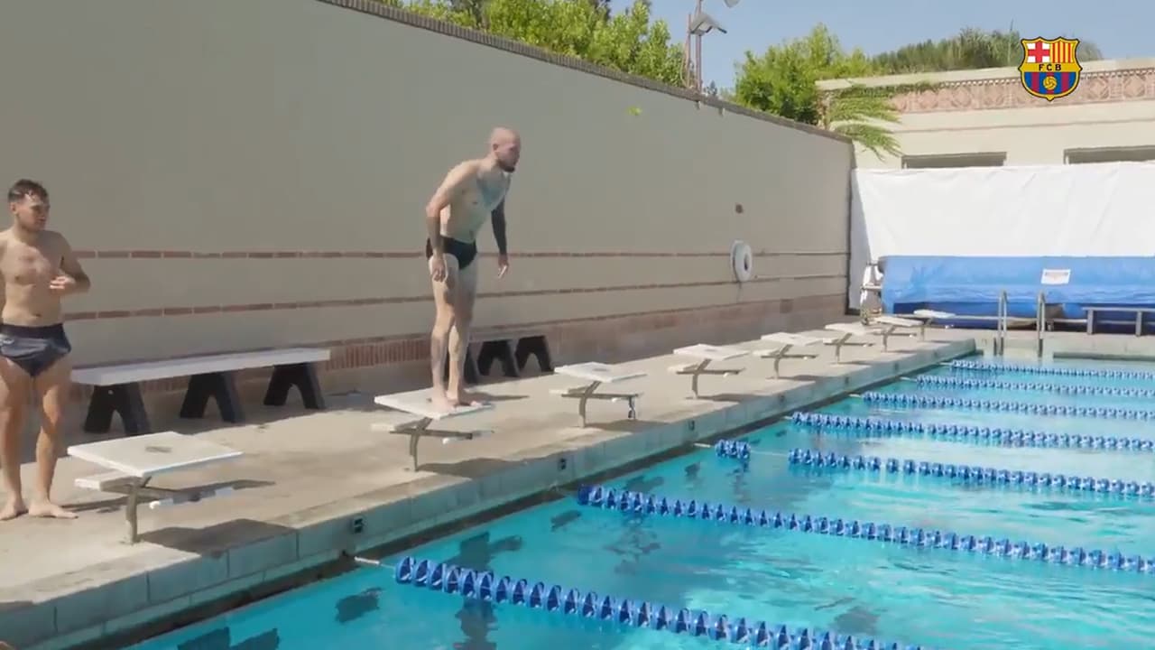La pretemporada del equipo catalán conjugó la diversión, un balón y una alberca en la que sus futbolistas mostraron sus mejores habilidades.