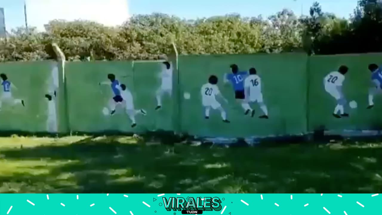 En una calle de Argentina se puede observar este gigantesco mural dedicado al denominado ‘gol del siglo’ que tuvo lugar en el Estadio Azteca.