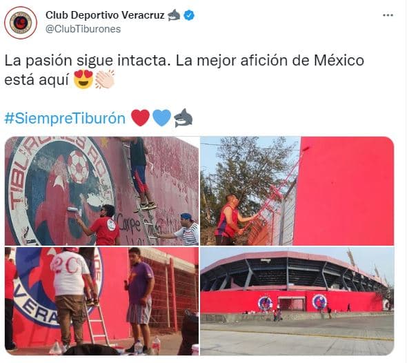 El equipo veracruzano presumió la pasión de sus fanáticos y mostró cuatro imágenes del proceso de restauración del mural que es parte del inmueble.