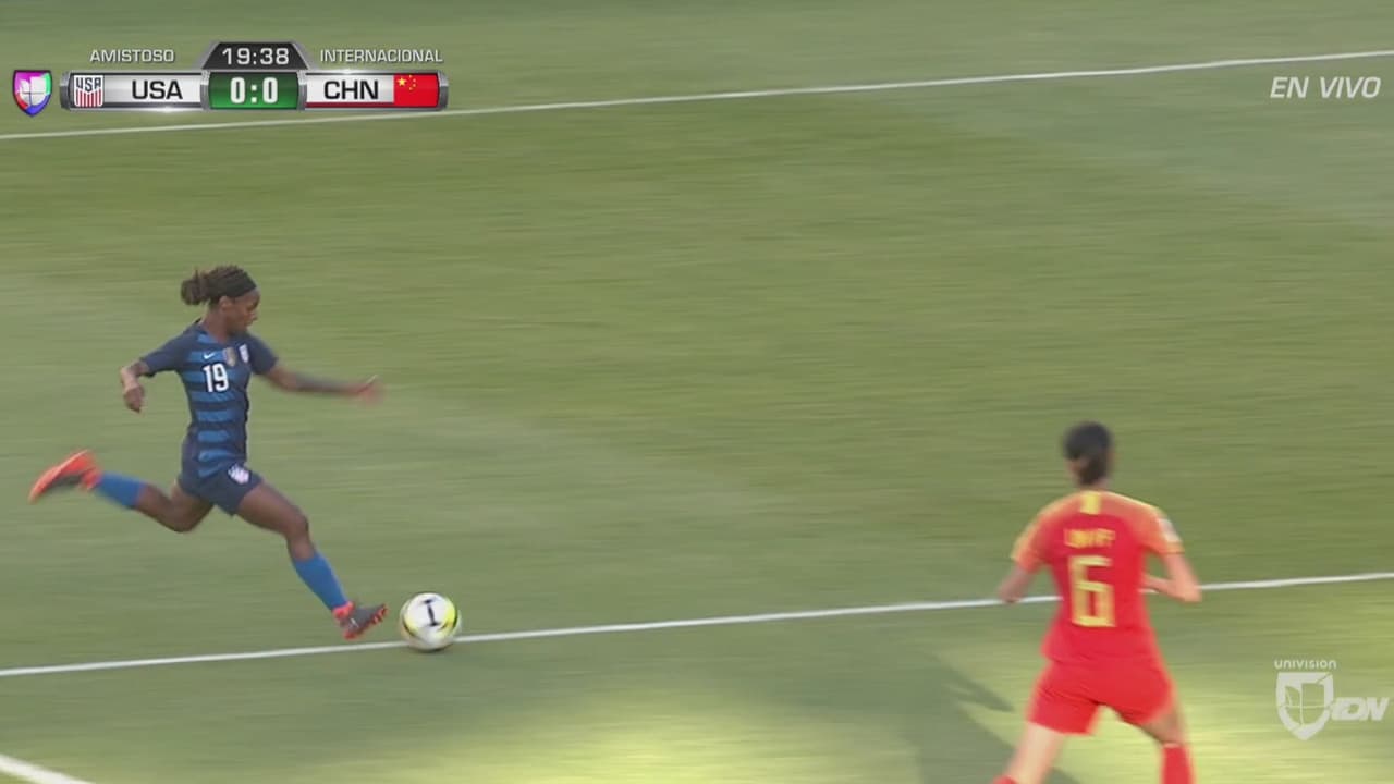 La delantera Crystal Dunn quitó la pelota e inició un rápido contragolpe que logró desactivar la arquera china.