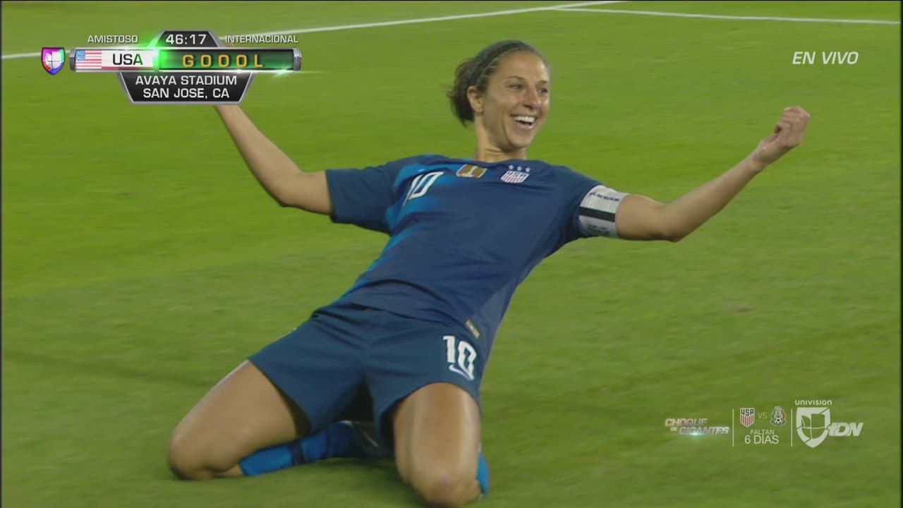 En la complementaria i ngresó la mejor exponente del fútbol femenino de los últimos años y con solo un minuto en cancha se lanzó de palomita para peinar un balón luego de un tiro libre y así darle el 3-0 a Estados Unidos.