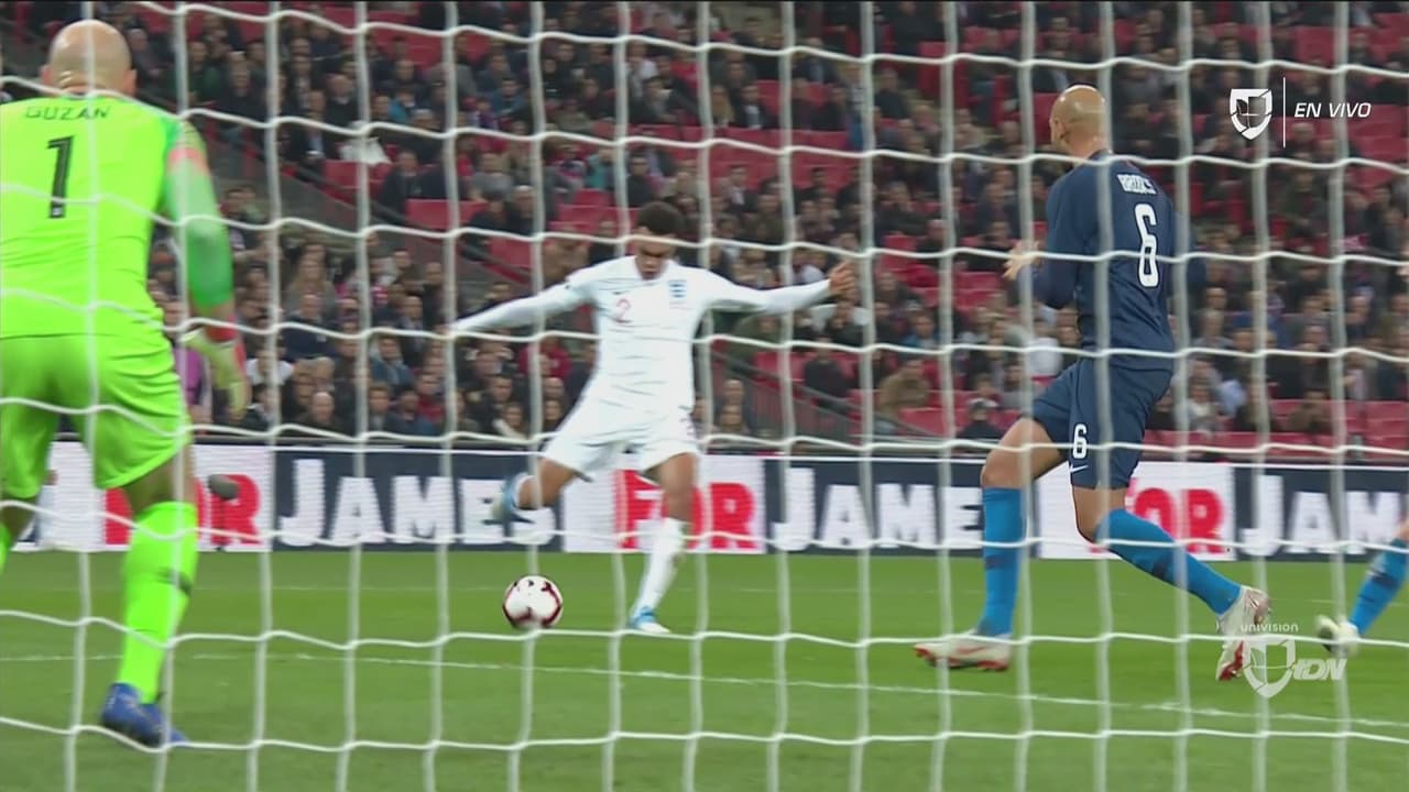 El Team USA aún no se recuperaba del primer golpe y el lateral de Inglaterra definió de gran forma dentro del área para el 2-0.