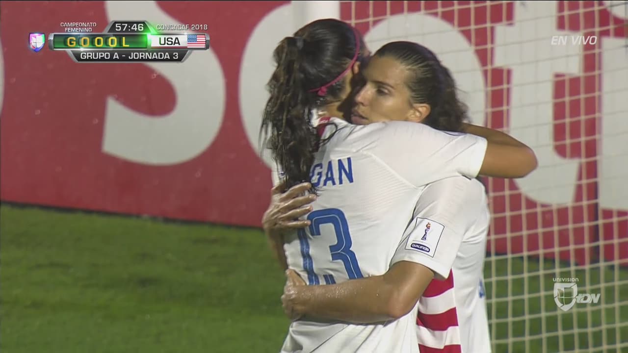 Luego de un centro raso al corazón del área, Tobin Heath entró como cuchillo y mantequilla para seguir incrementando la goleada ante Trinidad y Tobago.