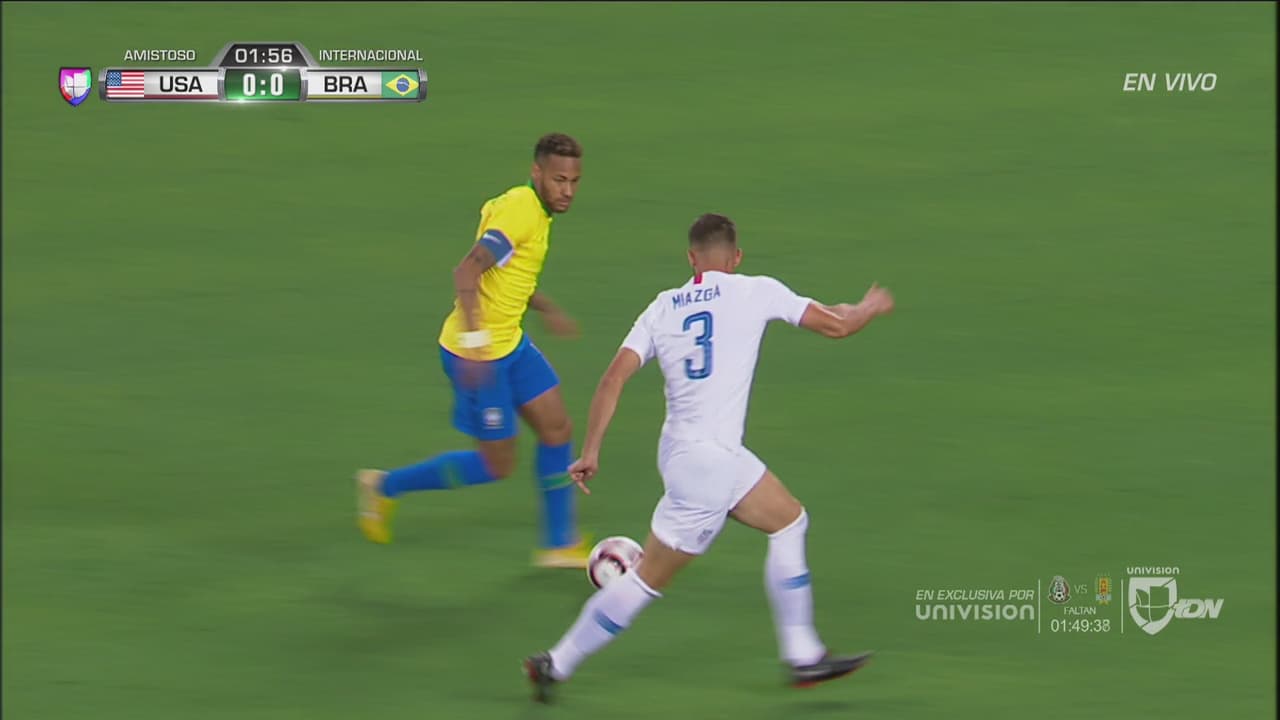 La Verdeamarelha intenta oportunidades en el área rival a través de su capitán, pero la defensa del Team USA reacciona y lo evita.