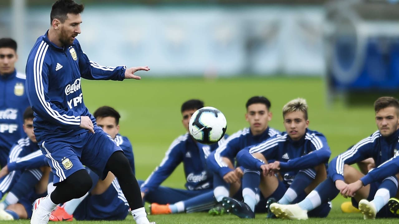El entrenamiento de la selección de Argentina dejó una curiosa imagen. El astro del Barcelona, que se unió recientemente a la concentración del equipo, volvió a acaparar todas las cámaras, pero en este caso, las de sus jóvenes compañeros.