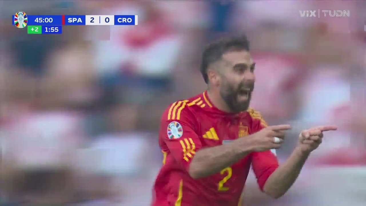 Si el tiempo pasa considerablemente en el bando croata, parece que no es el caso de Dani Carvajal. Uno de los grandes referentes de los ibéricos fue protagonista en este partido y también se dio el lujo de aparecer en el marcador sobre el final del primer tiempo cuando cerró una pinza de Yamal frente al marco e hizo oficial la goleada y, eventualmente, para cerrar los cartones.