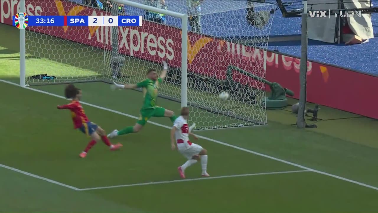 La explosividad en las piernas de Lamine Yamal empezó poco a poco a aparecer en el Estadio Olímpico de Berlín y, de esta forma, Álvaro Morata, con una jugada que hizo ver mal a la zaga croata, abrió el marcador a los 29' y dio la ventaja a España, misma que nunca perdería.