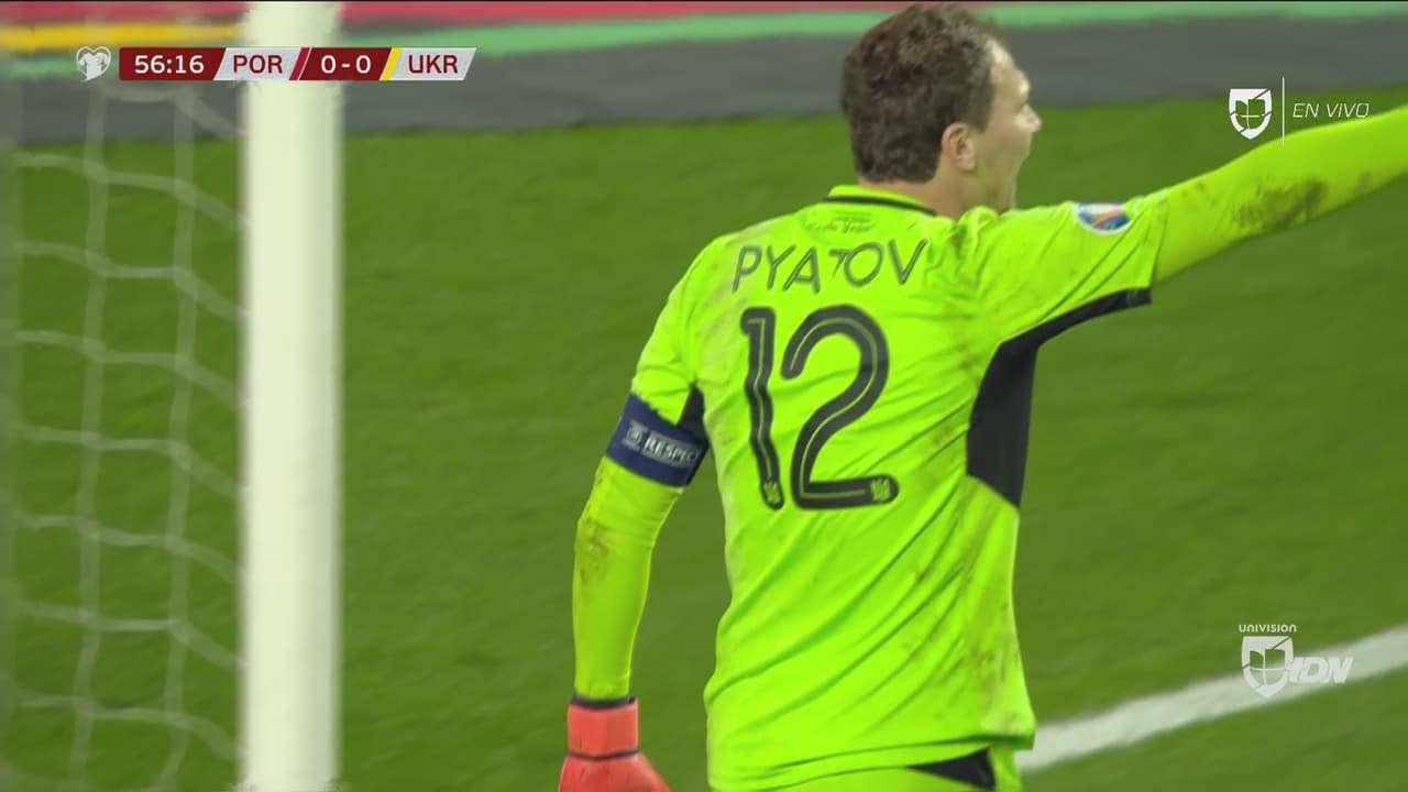 El arquero ucraniano ahogó el grito de gol de los portugueses tras detener un tremendo disparo de André Silva.