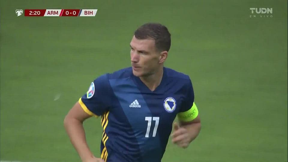 ¡CERCA!. Edin Dzeko disparó que se estrella en el poste. on September 8, 2019