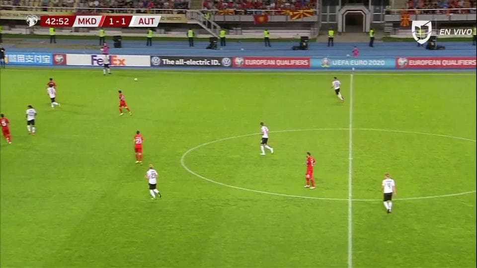 ¡CERCA!. Marcel Sabitzer disparó que se estrella en el poste. on June 10, 2019