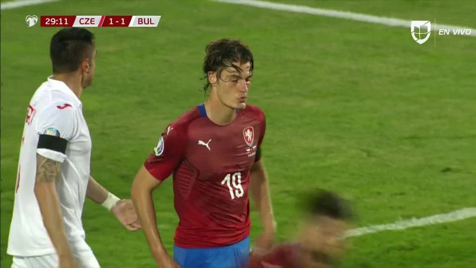 ¡CERCA!. Patrik Schick disparó que se estrella en el poste. on June 7, 2019