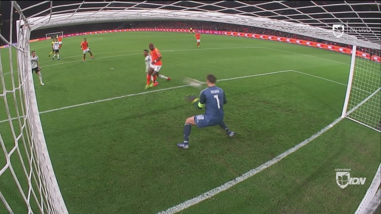 Pero el escenario se complicó más para los de casa cuando, a los 33 minutos, Alemania anotaba el 2-0. Serge Gnabry, el delantero del Bayern Munich, encaró al defensor Vrigil van Dijk y luego sacó un remate con la pierna derecha a un ángulo imposible para Cillessen logrando una verdadera joya.
