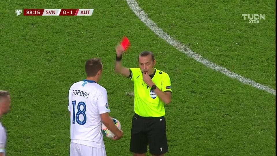 ¡Expulsión! El árbitro saca la roja directa a Denis Popovic on October 13, 2019