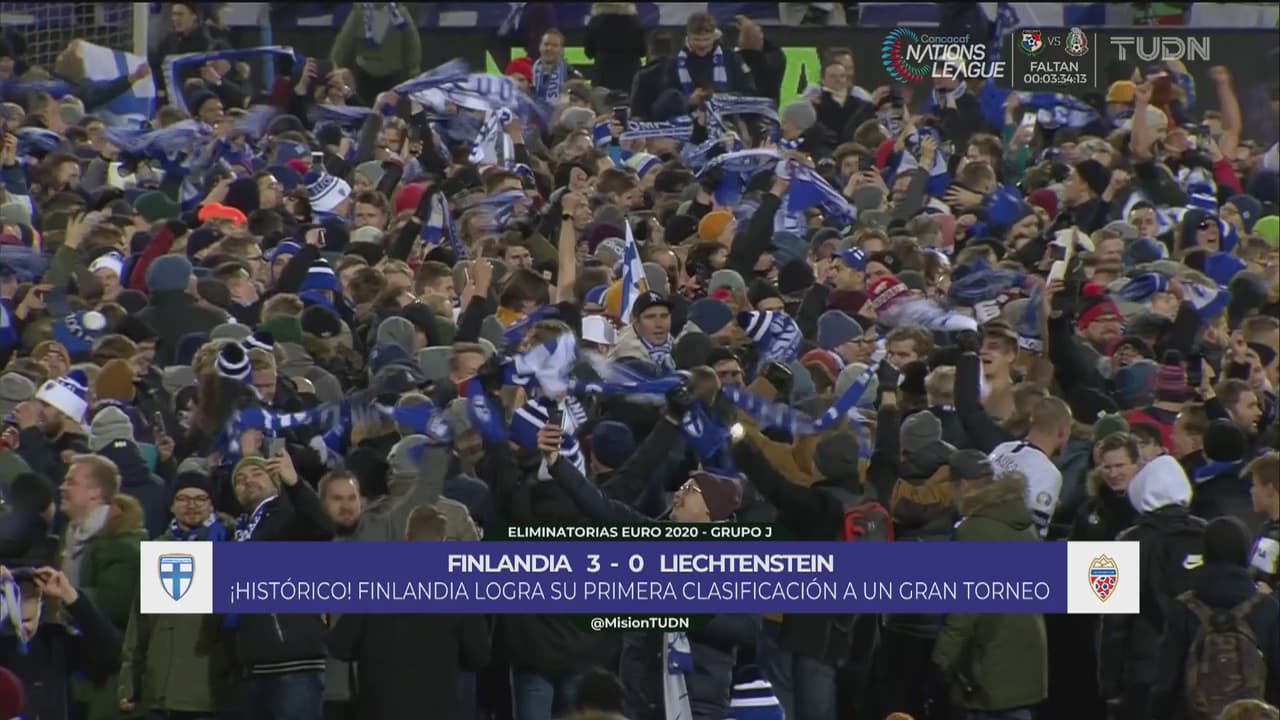 La victoria por 3-0 contra Liechtenstein impulsó a Finlandia a un hecho para la historia, la clasificación para la Eurocopa 2020, con la que completó un desafío hasta ahora inabordable desde la segunda posición del Grupo J, en el que Italia agrandó su pleno de nueve triunfos, mientras que Suecia cumplió con la exigencia del pase a la fase final con un 0-2 en Rumania y a la estela de España, líder inalcanzable con un 7-0 a Malta.