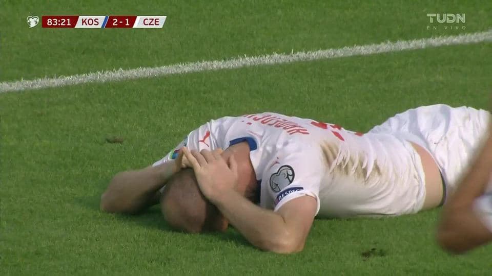 Florent Hadergjonaj despeja el balón y aleja el peligro on September 7, 2019