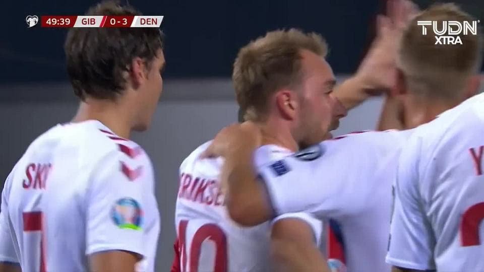 ¡GOOOL! Christian Eriksen anota para Denmark on September 5, 2019