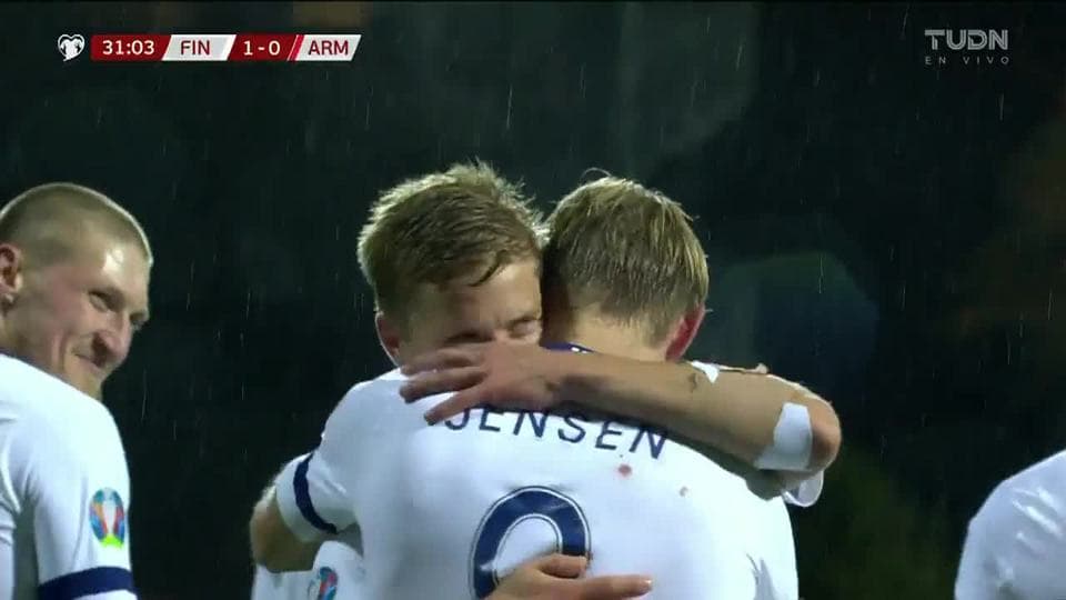 ¡GOOOL! Fredrik Jensen anota para Finland on October 15, 2019