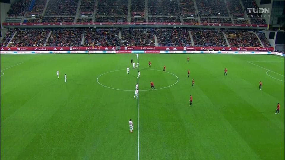Al conjunto español le costó abrir la lata, pero tras ocasiones fallidas de Cazorla y Ramos, anotó al 23’ gracias a un saque de esquina que remató Morata tras un rebote en la defensa rival.