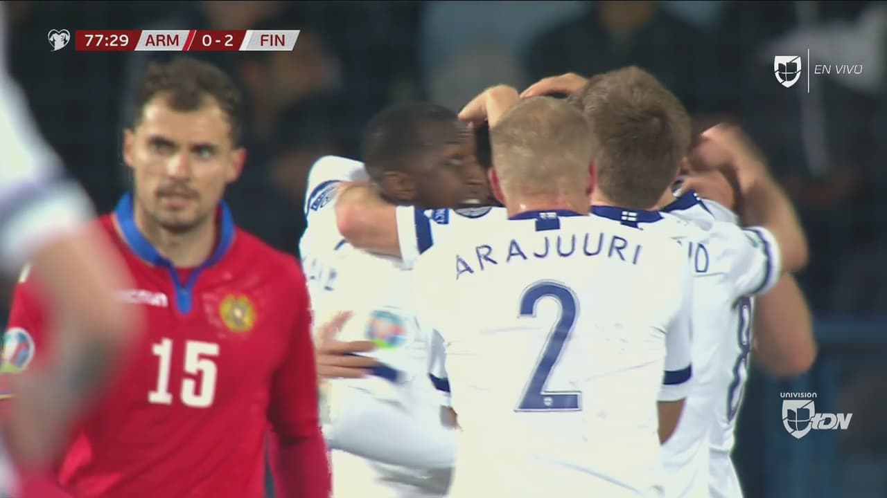 Los armenios no logran detener el ataque por derecha y Pyry Soiri solamente empuja el balón al fondo de la red.