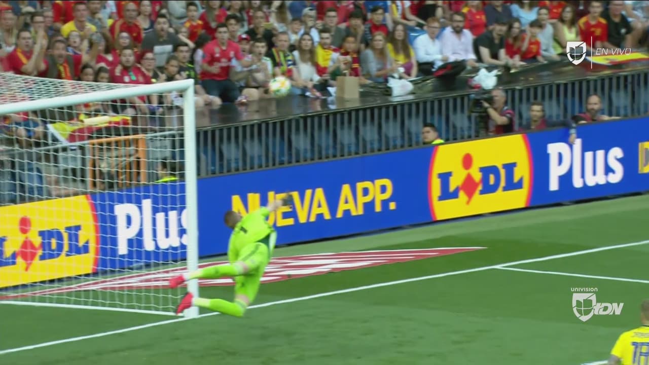 El jugador español, nuevo jugador de Nápoles, sacó a los 13 minutos un estupendo remate, pero el portero sueco evitó el tanto con una estupenda parada.