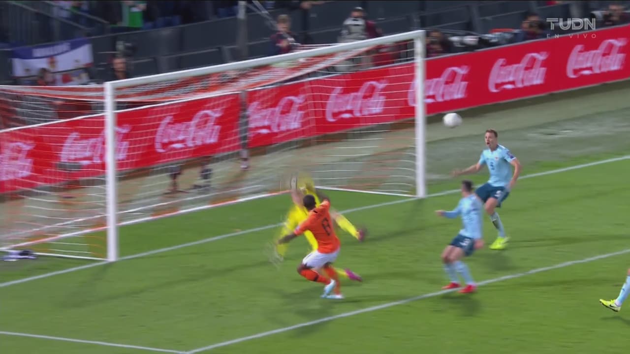 Con el portero ya vencido, Wijnaldum se queda cerca de marcar el 1-0 cuando Evans rompe la trayectoria del esférico.