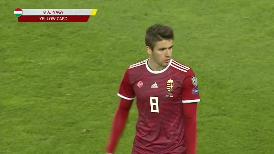 Tarjeta amarilla. El árbitro amonesta a Ádám Nagy de Hungary