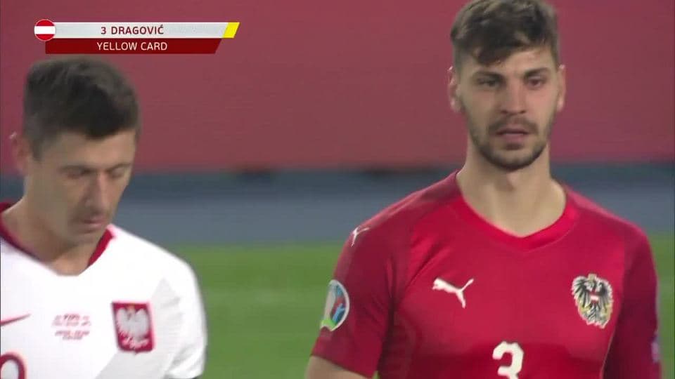 Tarjeta amarilla. El árbitro amonesta a Aleksandar Dragovic de Austria