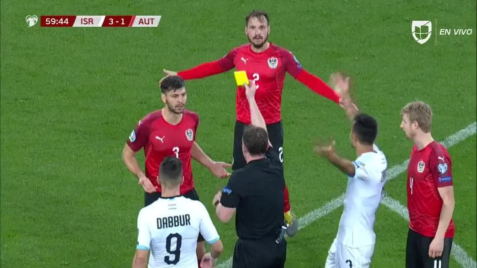 Tarjeta amarilla. El árbitro amonesta a Aleksandar Dragovic de Austria