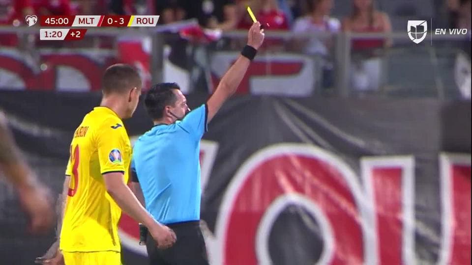 Tarjeta amarilla. El árbitro amonesta a Alexandru Chipciu de Romania on June 10, 2019