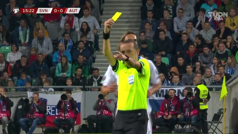 Tarjeta amarilla. El árbitro amonesta a Aljaz Struna de Slovenia